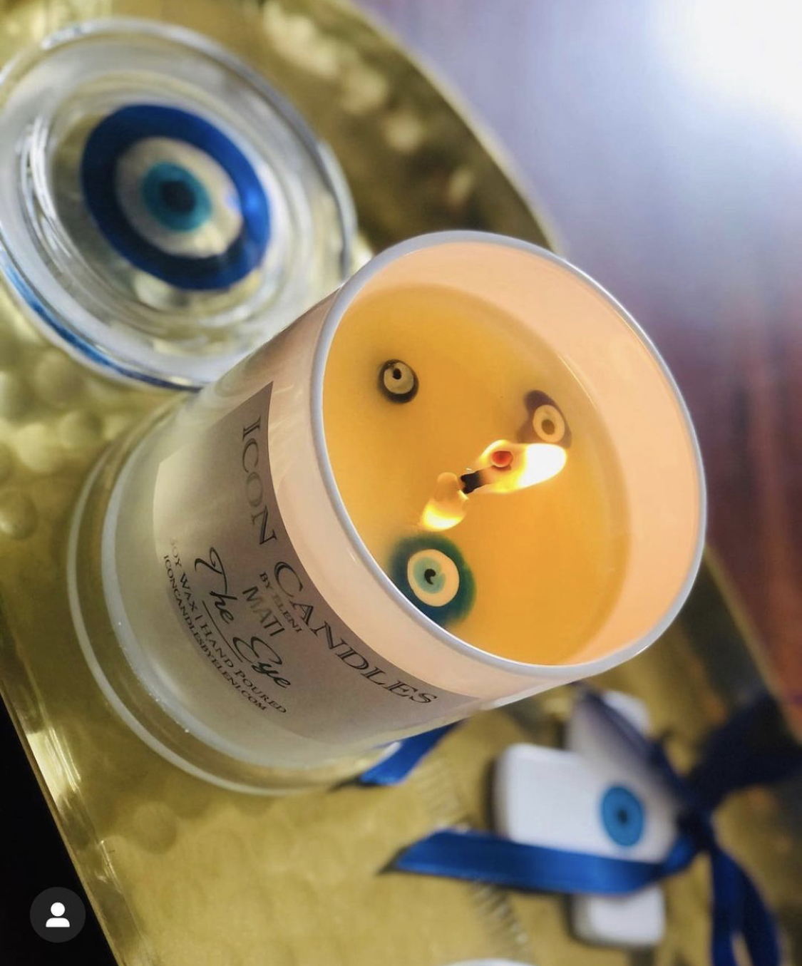 Inside this unique candle you will find a blue (light or dark) glass ‘Eye / Mati’ bead/s (round ball, disk or heart shape) that emerge as you burn the candle. The bead/s can be kept upon completion of your candle and used for ‘good-luck’ to ward off negativity and to keep on your person or in your home as ‘protection’ from the ‘MATI’ (Evil Eye).